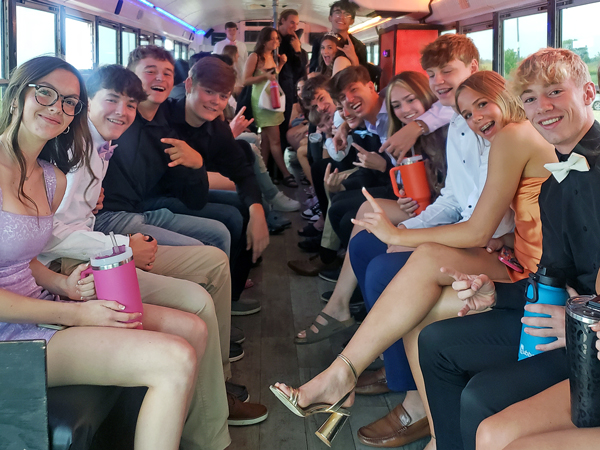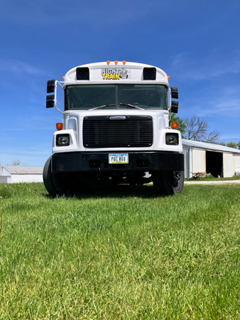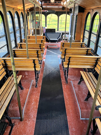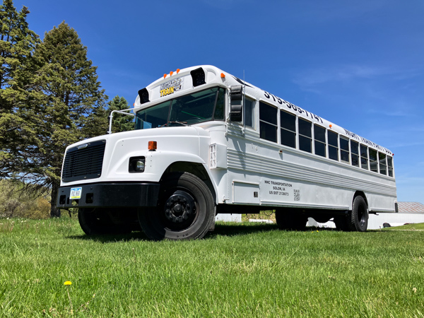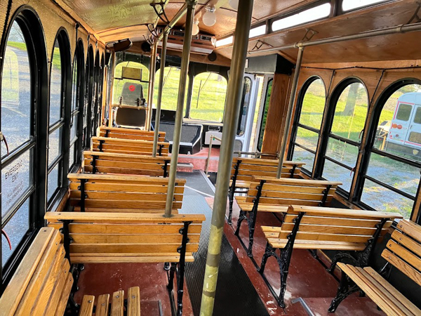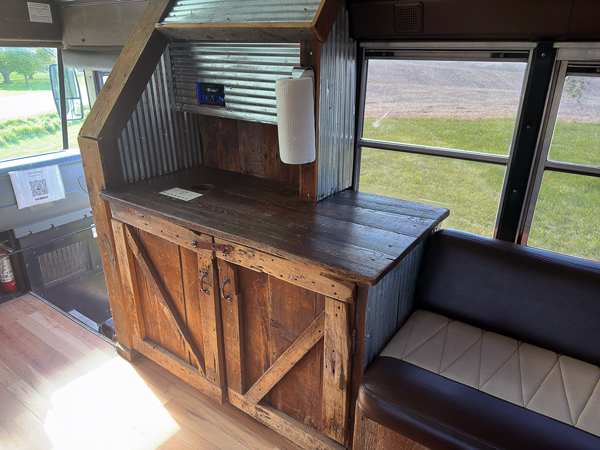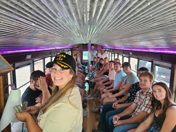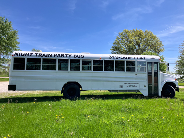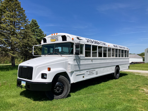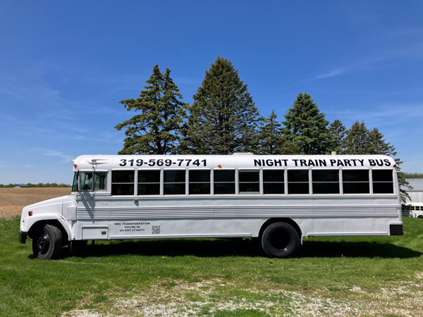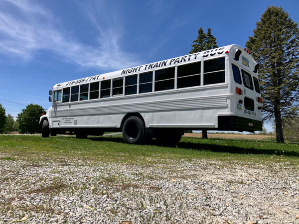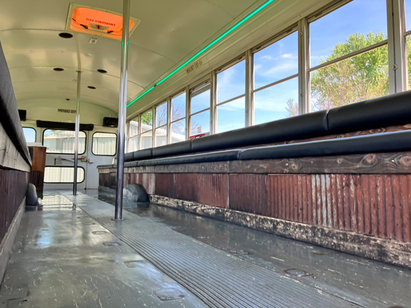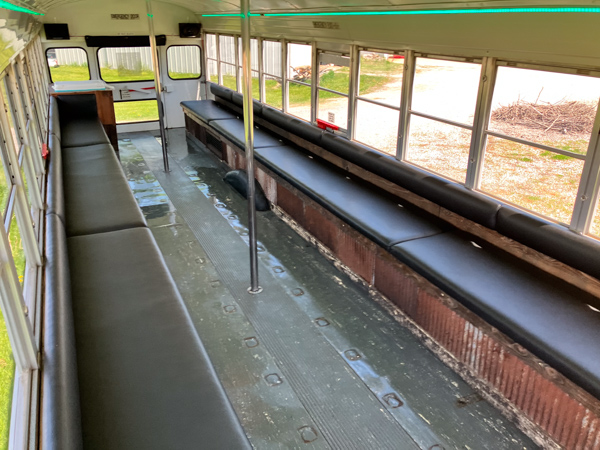 Heat, 4 surround speakers, 2-12″ subwoofers, bench seating along walls, cup holders, 1 dance pole, hand rails, wood trimming, LED multi color lighting, tinted windows, seating for 40, Bluetooth capable stereo system, USB charging ports.