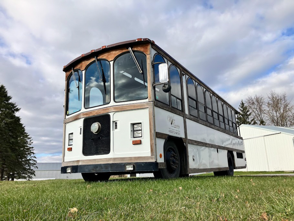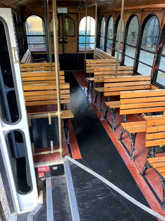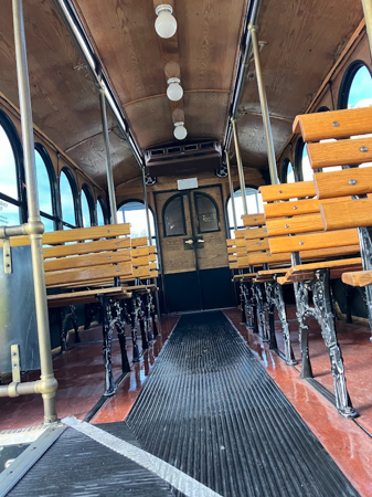 Capacity of 26 seated / 35 with standing, wood & brass trim, Bluetooth stereo, rear balcony great for photos